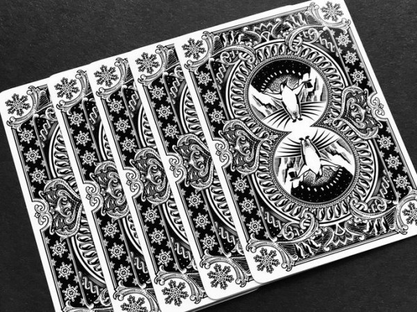 Snowflakes and detailed scrollwork complete the look. The back design is rotationally symmetrical so it can be used for magic tricks, card games, and more.