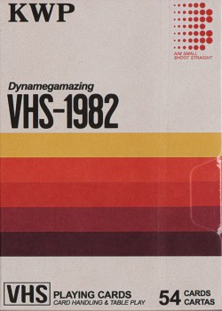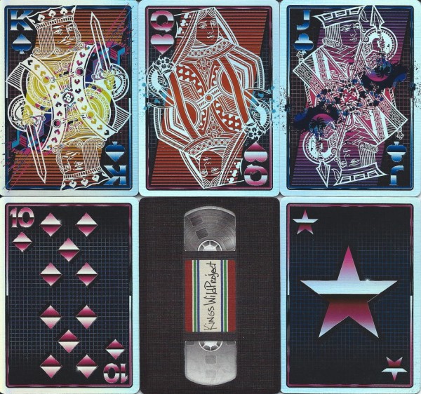 VHS is the February 2020 Kings Wild Shorts subscription deck. The tuck is side-opening and the backs, when flipped, give the illusion of a VHS tape rewinding.