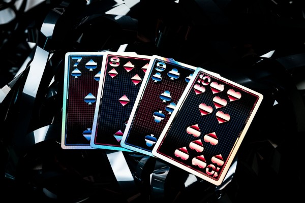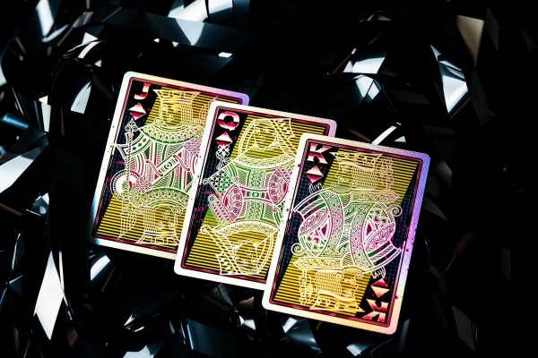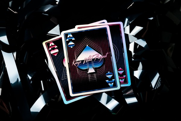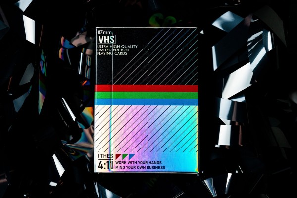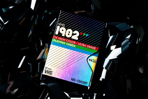 VHS 1982 is a light-hearted deck that is inspired by the bold designs of the early 80s. The Kings Wild standard court cards get a totally rad upgrade with face-melting holographic foiling on both the front and the back of the cards.