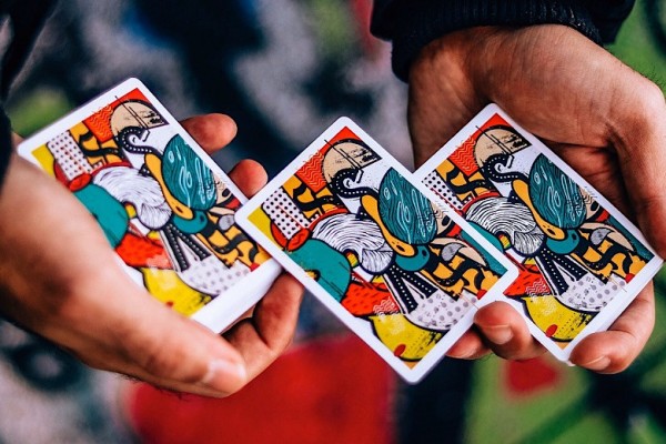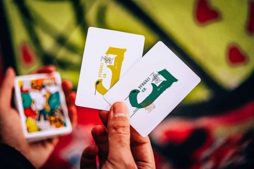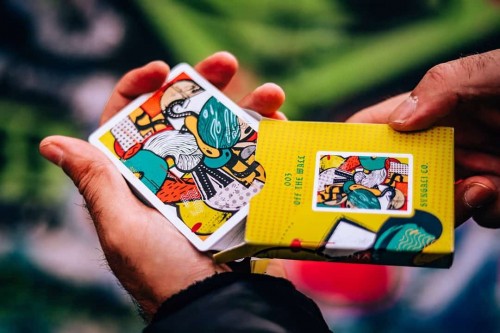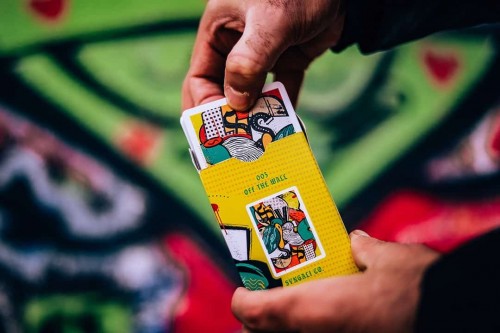 SVNGALI is the newest brand and project from the minds of Alex Pandrea and designer Edo Huang. This THIRD installment "OFF THE WALL" with an artistic design that is inspired by modern art galleries and graffiti art. OFF THE WALL features a custom graffiti paint back design, custom Ace of Spades, REVEAL Court Cards throughout the deck, and custom cards with a subtle hint of vintage feel. LIMITED EDITION