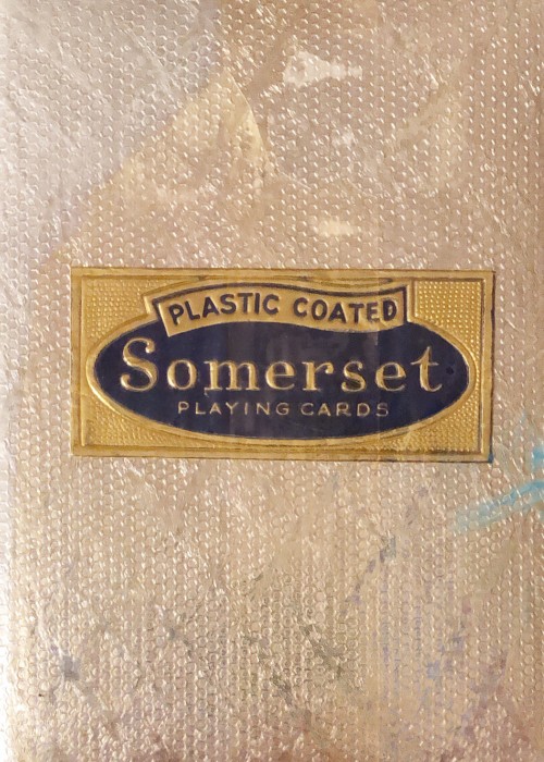 Advertising deck for Somerset Liquors in Somerset, Massachusetts. Unknown printer, the top of tuck indicates made in USA.