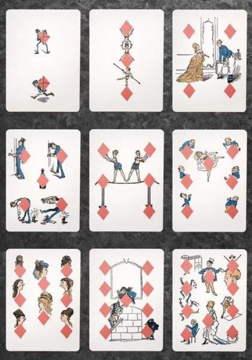 This reproduction deck was first printed in 1876 by F.H. Lowere. It is noteworthy as it was the first transformation deck printed in the USA and also the first transformation deck to include a joker. The deck was recreated digitally from scratch with special thanks to Columbia University for providing high resolutions images from the original deck from the Albert Field playing card collection.
