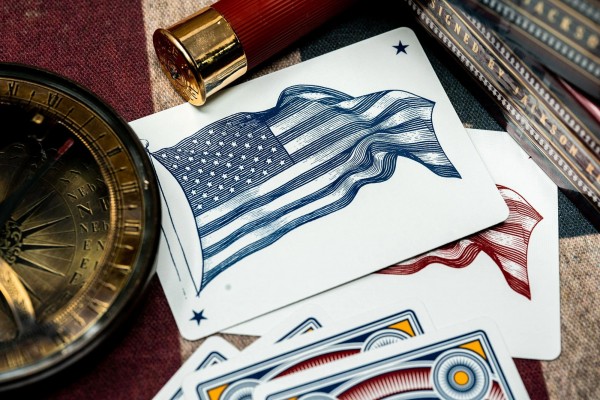 This deck will feature my new set of Kings Wild Standard Vintage Courts. This court set was originally developed for the Tigers but I have evolved it even further from the courts used in the Standard Tigers deck to what you see below. This is the same court set featured in the Thoroughbreds deck as Brad stated, but it will have a Red, White, and Blue color theme in the Americana. I didn't want to go over the top with this court set as I wanted it to have a very classic feel.