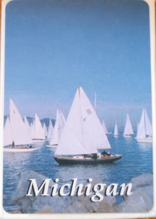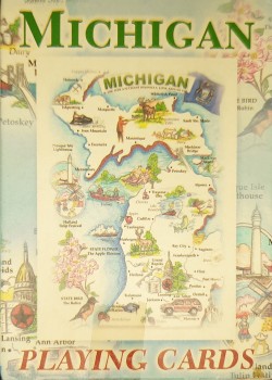 This Central Michigan University deck (Mt. Pleasant MI, home of the Chippewas) is a high quality, gold embossed souvenir deck in a Gemaco generic tuck with a cellophane open front.