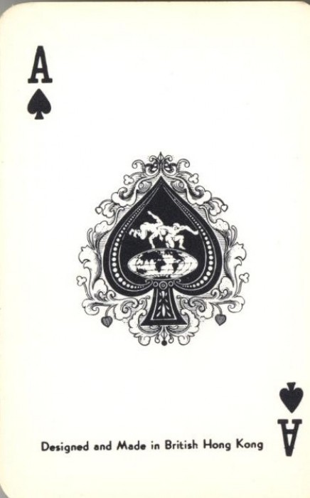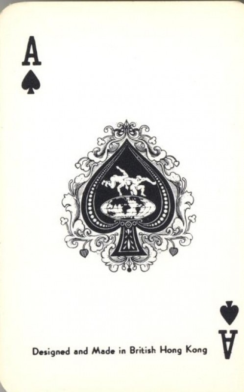 This mini deck measures 58mm x 38mm and was printed in "British" Hong Kong, which would date it pre-1997 (likely well before). The spade ace logo is identical to the Skore MLB baseball team decks of the 1980s, which were first printed in Hong Kong and then Taiwan. It has a cardboard tuck box which is somewhat larger than, but reminiscent of, a matchbook. The joker design is similar to the children's decks of the time, with a clown holding balloons and the hands of children.