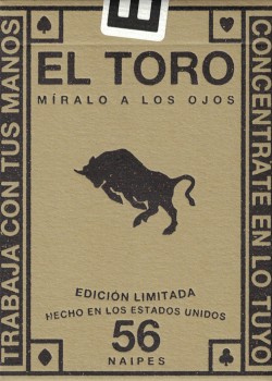 The United States Playing Card Company printed El Toro right here in the United States on their Classic Bicycle Card Stock. The cards have an air-cushioned finished and handle to the same high standards of any deck printed by USPCC. Full Deck Scan: https://cardscans.piwigo.com/index?/category/378-el_toro