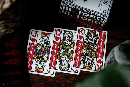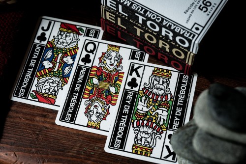 Artist Jackson Robinson finds a considerable part of his inspiration from wine and spirit labeling. El Toro is no different. Inspired by the bold, type heave art of vintage Mezcal bottle labeling, El Toro puts forward a strong sense of design and color wrapped up into a standard size deck of playing cards. From the bold but straightforward tuck cases to the colorful and lighthearted, hand-illustrated court cards, you will surely love this new take on playing cards.