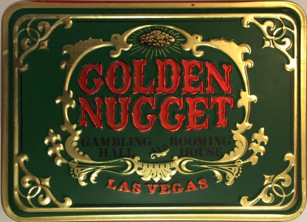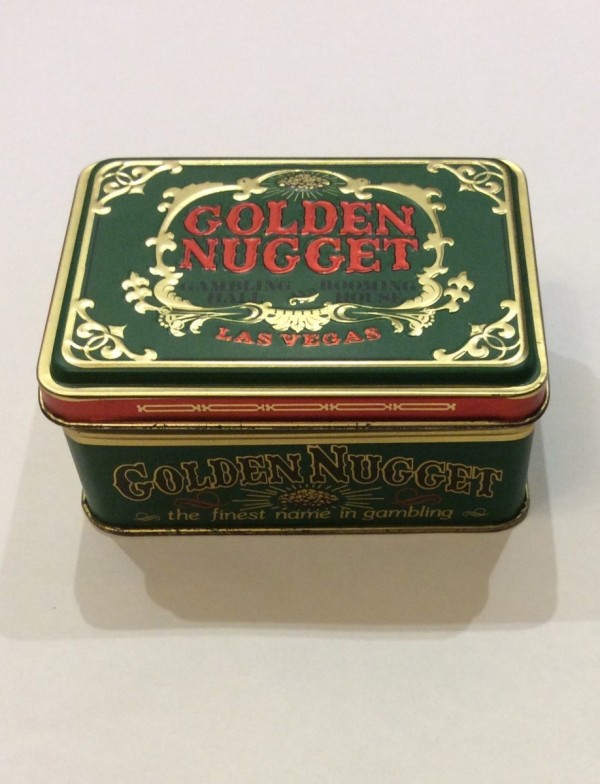 Golden Nugget are the second most famous vintage casino cards (after Jerry\\\'s Nugget). Produced since 1962 they have the most number of colors: Orange, Red, Purple, Black, Blue, Green, Brown, Red/Gold, Green/Gold, Gold/Black, Black/Gold (11 colors and 2 variant of 2 colors). The rarest are 1st run in Purple and Blue with 1-pack tax stamp (produced before June 22, 1965) and Orange deck.
