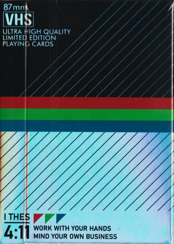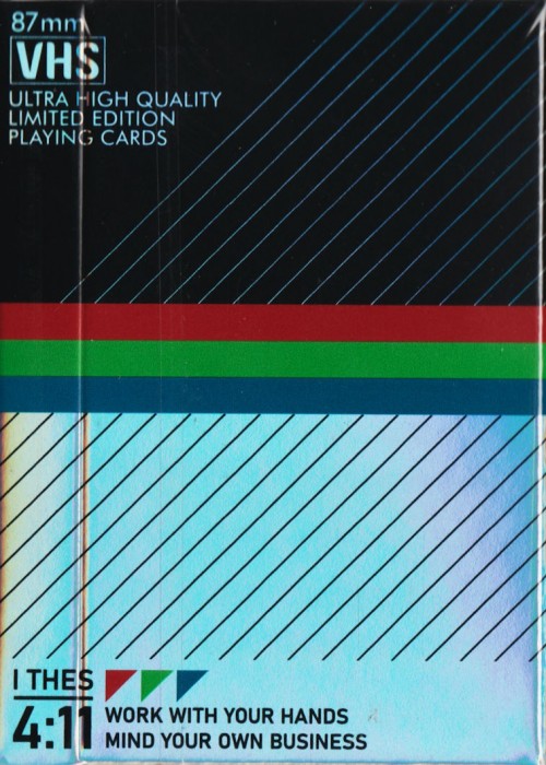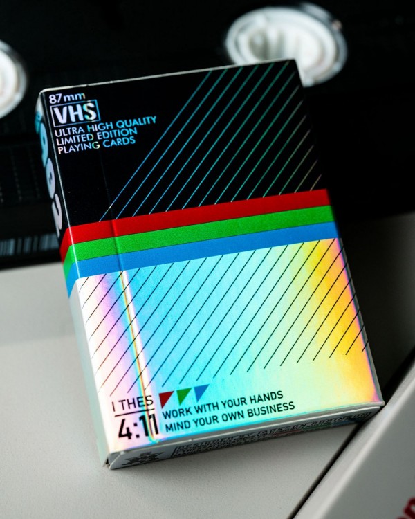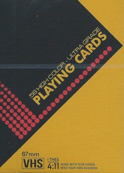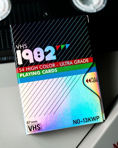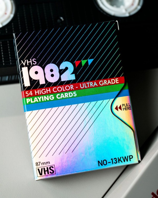 VHS 1982 is a nostalgic retro playing card deck that brings back memories of putting electrical tape over your VCR to keep it from blinking all night long and blowing the Nintendo game cartridge out before you start a 4 hour Contra marathon with you big brother.