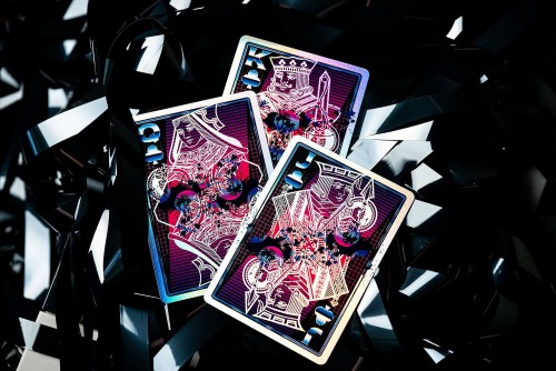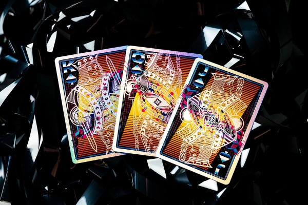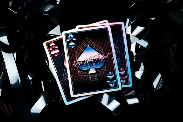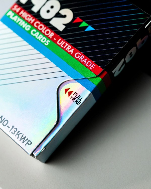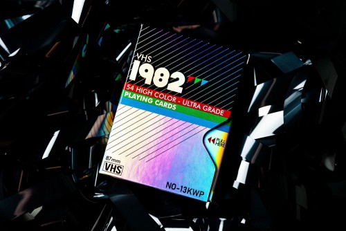 VHS 1982 is a light-hearted deck that is inspired by the bold designs of the early 80s. The Kings Wild standard court cards get a totally rad upgrade with face-melting holographic foiling on both the front and the back of these retro playing cards.