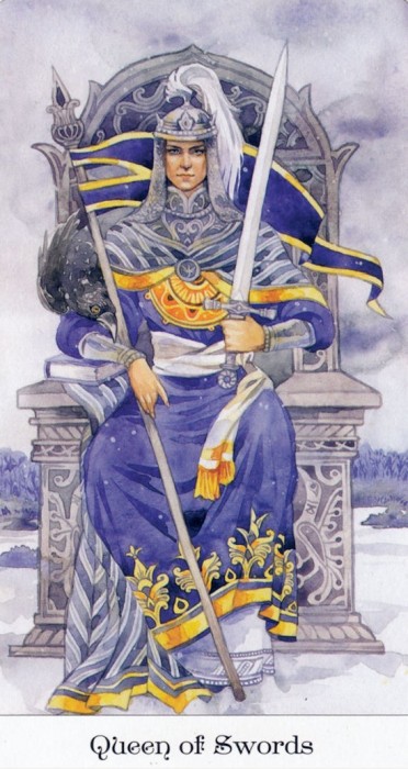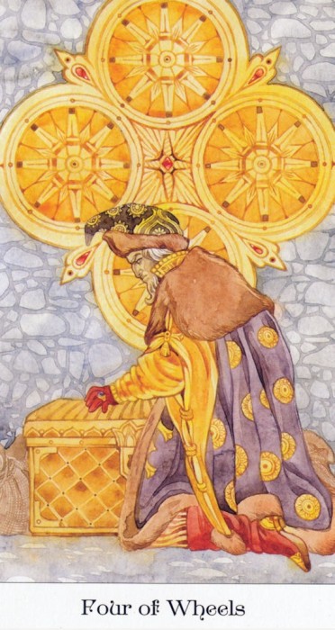 Scans of each card can be seen at www.marytcusack.com/maryc/decks/html/Tarot/GoldenWheel.html