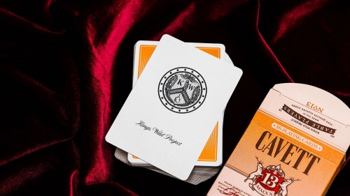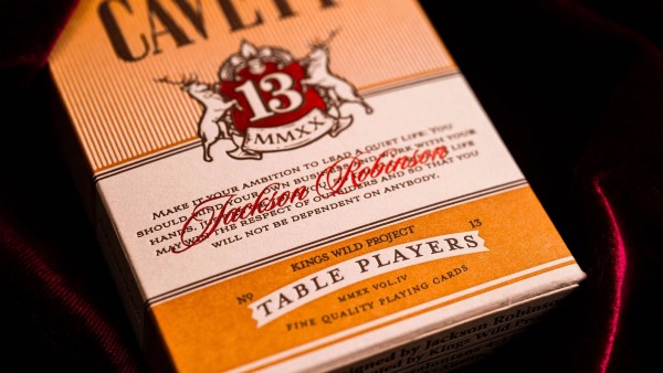 Cavett is the 4th volume in the six volume Table Players Subscription Series. Named after my nephew, the deck follows the direction of the Table Players series, taking inspiration from vintage tobacco and cigarette packaging from the early 20th century. The beautiful letter-pressed tuck case, hints of red foiling, and rich color palette amplify the clean and elegant artwork in the deck.