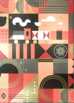 From an FAO Schwarz magic set, December 2019. Standard poker cards with one-way backs similar to the box but not identical. The jokers are different, showing a spade or heart, depending on orientation, one in red and one in black. There is no other information on the box or cards.
