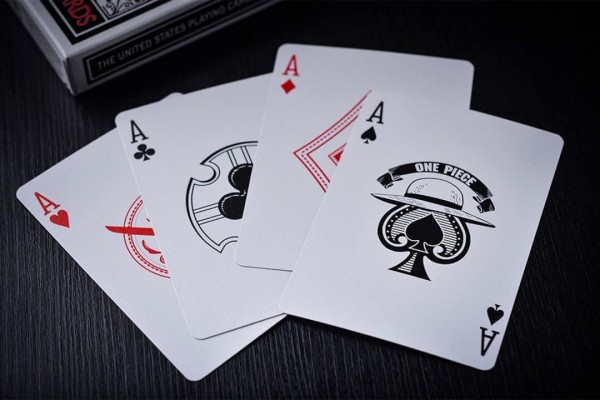 The Aces and some of the Number Cards are designed as Semi-Tranformation cards. Some of the pips are replaced, arranged or overlapped with elements coming from the anime. Avid fans of the anime would recognize them immediately: from the hats to the weapons.