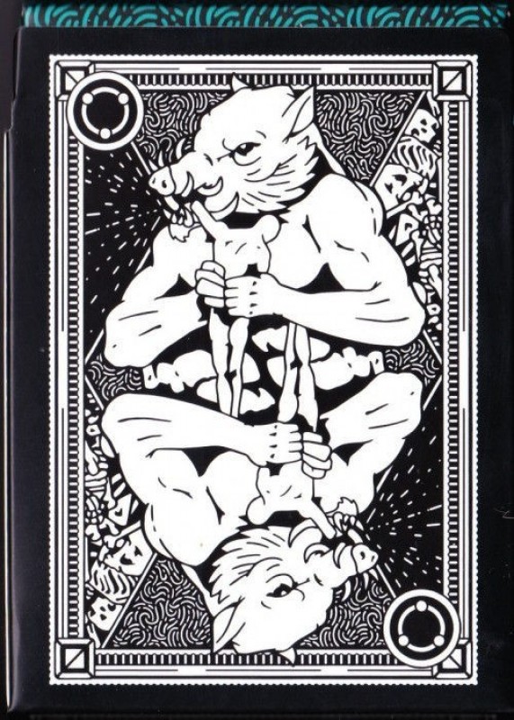Man always asks for just a little more, that's why we grant you sevenfold the average set of playing cards. Yes, you get seven decks of premium, thematic cards that portray the evil within mankind.