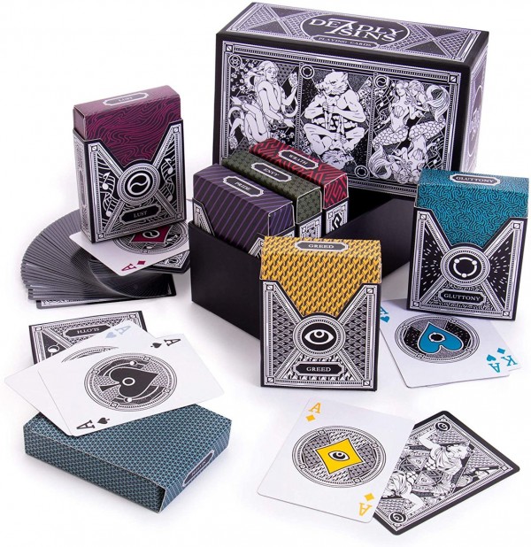 We're all sinners, here. What's your guilty pleasure? Are you always longing for something new, something shiny? Do you live to be the envy of the party? No matter your vice, the 7 Deadly Sins playing cards box set will be all the rage at your next Halloween gathering or poker game night. Now, you can visit the unsettling layers of the underworld without paying the carnal price, like Dante centuries before.