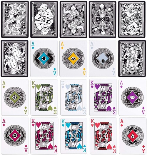Man always asks for just a little more, that's why we grant you sevenfold the average set of playing cards. Yes, you get seven decks of premium, thematic cards that portray the evil within mankind.