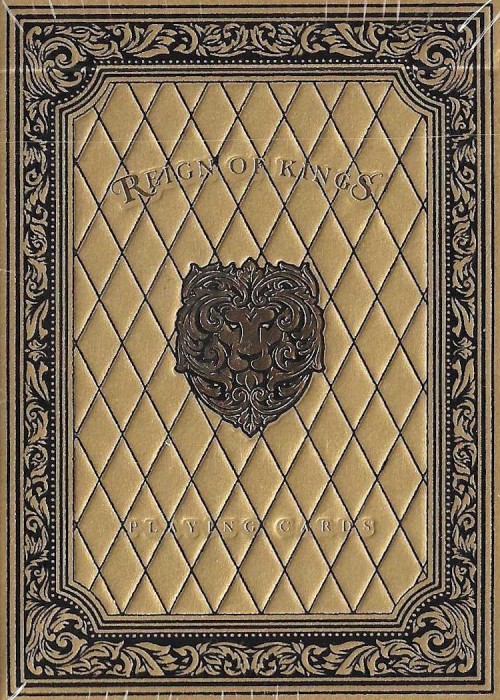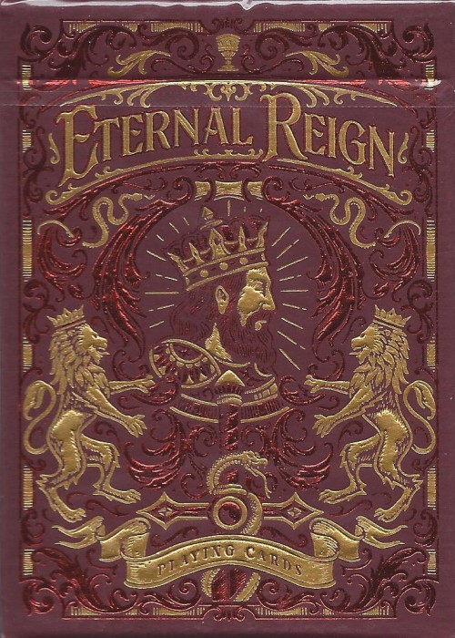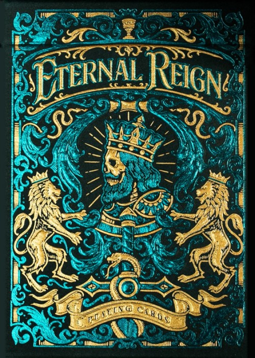 Welcome to the realms of kings and queens, the territory of the proud and brave. This new deck drops you right in the middle of a medieval kingdom, which is held under the eternal reign of four royal families, one for each suit. Two editions, Ruby Empire and Sapphire Kingdom, limited to 200 Gilded decks each were only available during the last 3 days of the kickstarter campaign. Each deck comes with a numbered seal and fully customized number, court, ace and joker cards. Designed by Dhamas Adhitya.