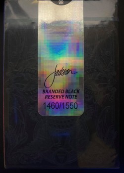 Same tuck as the "Black Reserve Note - Black Gilded", but signed and numbered with the "Black Reserve Note - Green" cards. 162 decks released.