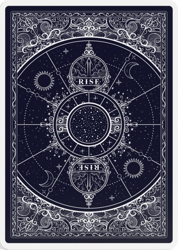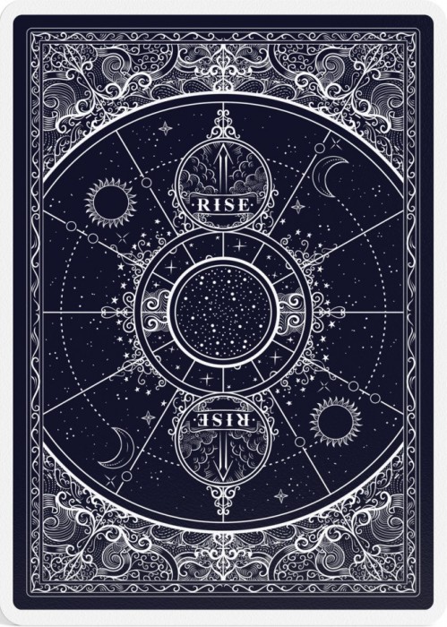 In contrast to the intricate detailing found on the box and the reverse sides of the cards, the number cards introduce a refreshing simplicity. In both editions, the hearts and diamonds are red with golden detailing, and the clubs and spades are black with gold details for the Rise Edition, and purple on purple in the Sunken Edition.