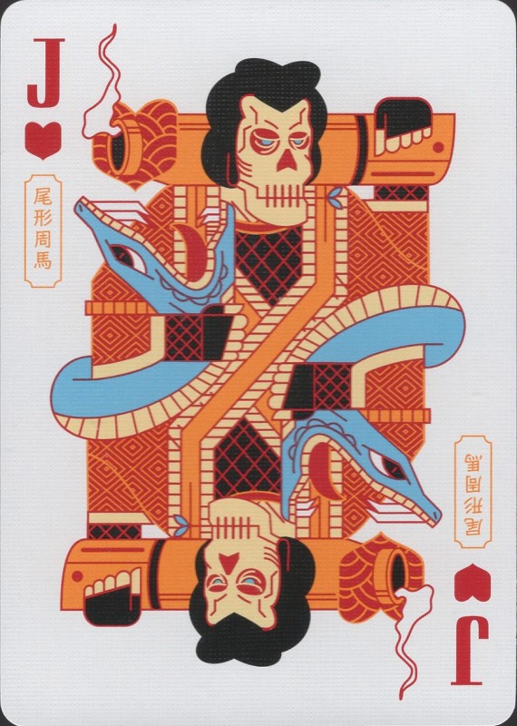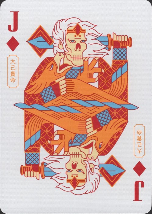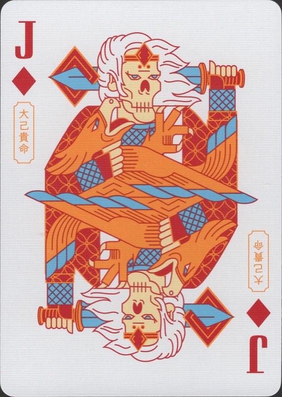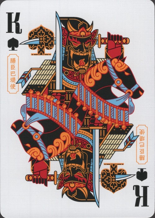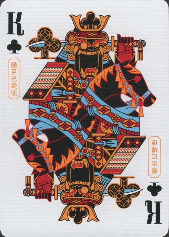 Musha & Goketsu revolves around the intricate and colourful visual elements of Musha-e, traditional Japanese woodblock printing featuring portrayals of warrior figures, and the equally colourful characters of Suikoden, a tale of a band of Robin Hood-esque hero bandits. Full Deck Scan: https://cardscans.piwigo.com/index?/category/483-goketsu_regularCOMPANY:Card Experiment