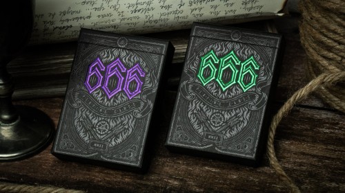 The 666 Purple Inferno & Emerald Hellfire are the second edition from the 666 Family. Inspired by the Devil’s number 666 and the mysterious occult practices. On the first look, the overall design is very simple, the deck enveloped in dark colors. Yet when you hold the deck to the light, the whole box lights up with intricate details that were hiding in the shadows.