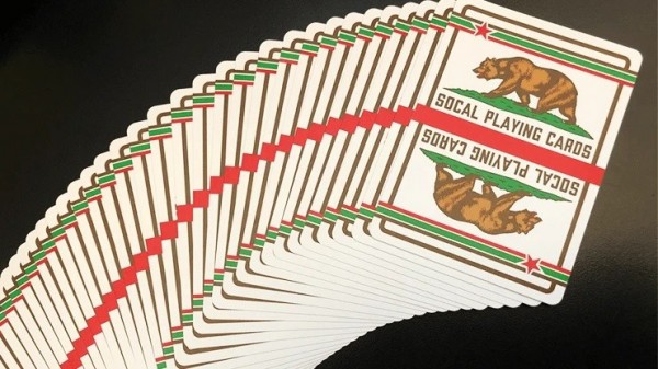 The first deck from lifelong SoCal native Henry Cortez and SoCal Playing Cards, introducing SoCal Playing Cards! With the four primary colors and elements of the California flag, we present a deck that we are proud to call our own. But, this is not some run-of-the-mill novelty deck! It was important to us to also produce a deck feels and handles just as well as those that cost twice as much! Recolored pips and courts in the four main colors of the California flag in pantone inks.