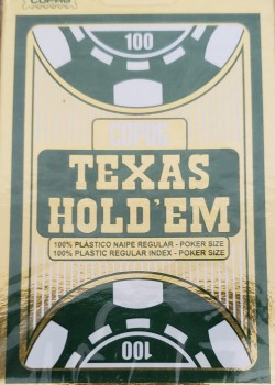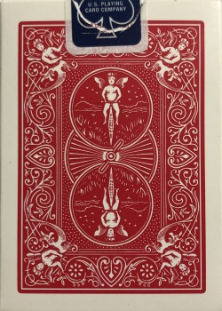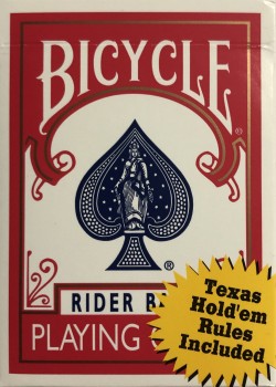 Part of a Bicycle branded zipper case kit containing two decks, one blue and one red, and Texas Hold 'em Rules. "Ad cards" also list condensed Texas Hold 'em rules. Standard deck otherwise.