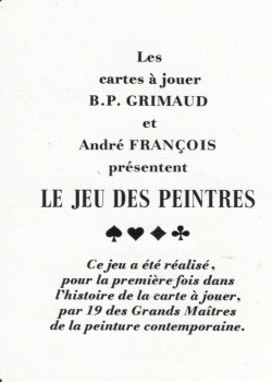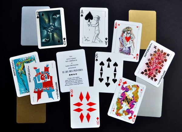 Each deck has 52 cards + 3 Jokers + 2 side descriptive cards containing info on the 19 painters that contributed design to these cards.
