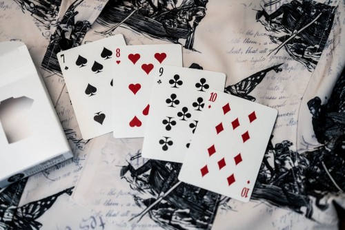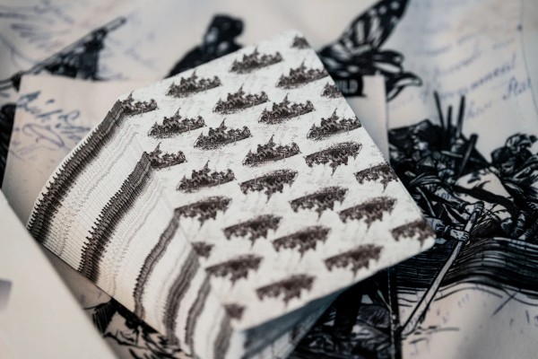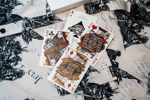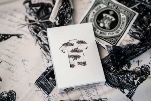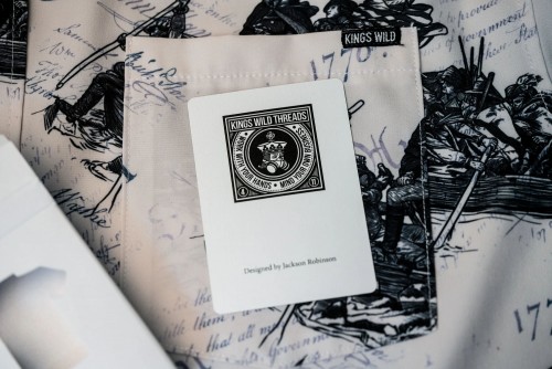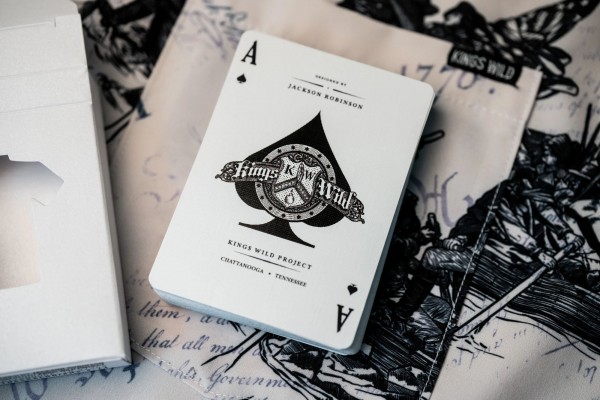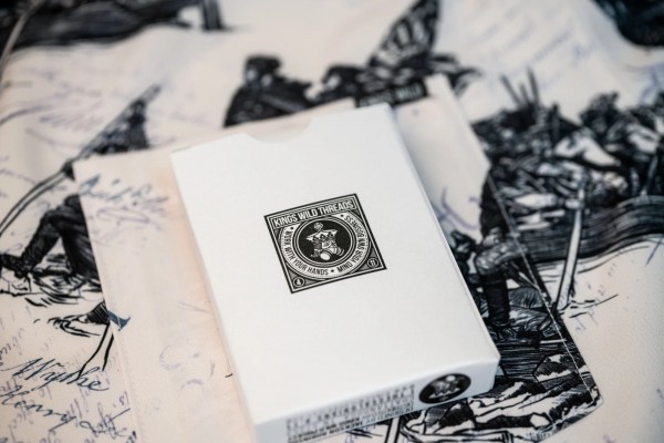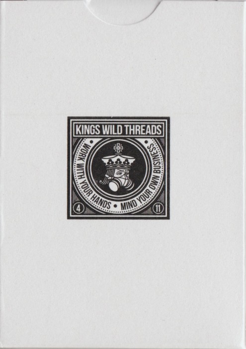 The Kings Wild Threads Deck No. 2 is the second deck in a line of custom playing cards made to pair with the Kings Wild Threads Shirt line. These limited print decks feature a matching pattern on the back design which can be viewed through the custom shirt shaped die cut hole on the tuck case. Designer Jackson Robinson used his own standard court and pip designs on this simple yet unique deck of playing cards.