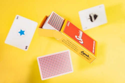 Each deck comes sheathed in a metallic sleeve with a custom seal. The tuck box is inspired by Cigarillo packaging and engineered by our team to perfectly fit a deck of playing cards instead of mini-cigars. Pull on the half-moon cutouts with your fingers and the tuck will slide out in a tray and hinge down, allowing you to effortlessly pull out the deck in a seamless action.