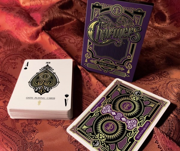 Award-winning designer Lotrek (OathPlayingCards) and South Carolina based magician Kellar O'Neil join forces to bring you CHARMERS: a uniquely elegant deck of playing cards, evoking the art, luxury and taste of the Victorian Era. Ideal for magicians, playing card collectors and card enthusiasts alike. Printed by Cartamundi in Belgium on their proprietary Slimline stock with True Linen B9 finish.