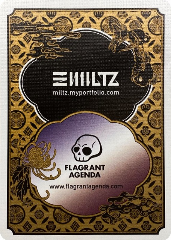 The aesthetic mainstay of Edo Karuta is the ubiquitous Edomoji, Japanese typographic and lettering styles that were invented and vastly popular during the Edo period. They are primarily used for advertising and branding in the various trades that sprung up during the prosperous epoch before the advent of modern Japan. You can still see many traditional Japanese brands using Edomoji in their marketing efforts. Walk by any Japanese restaurants and you will bound to see banners with Edomoji written on them. In Edo Karuta, these typographical elements are superimposed onto each other to make up interesting and visually arresting motifs, the signature style of MILTZ that we saw in his Shibuya Bluffiti project. You can see these representations most clearly in our card backs.KickStarter: https://www.kickstarter.com/projects/flagrantagenda/edo-karuta-playing-cards