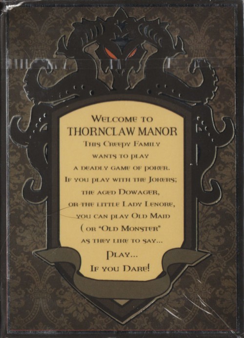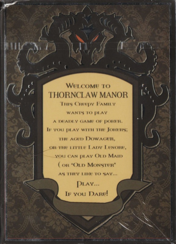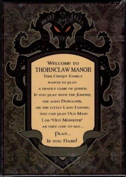 The Second Beautifully creepy illustrated Poker Deck from Thornclaw Manor. Each facecard is Lavishly illustrated with a different member of the Thornclaw Monster Family with Silver accents on each facecard.