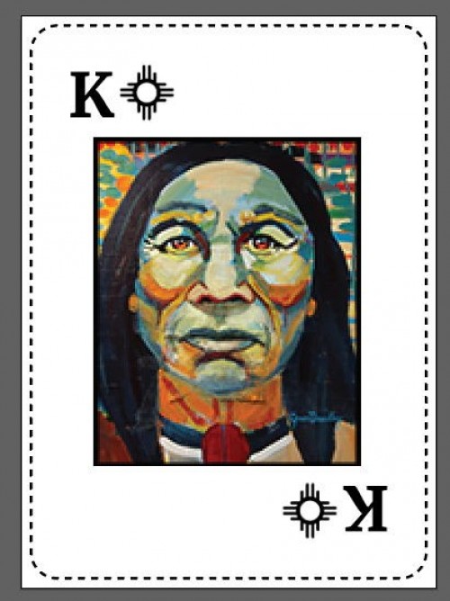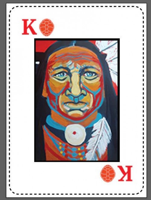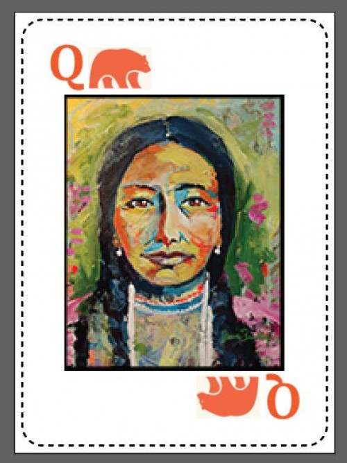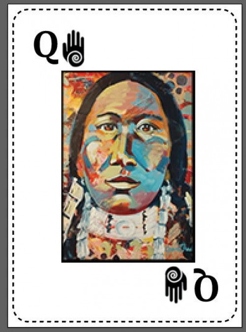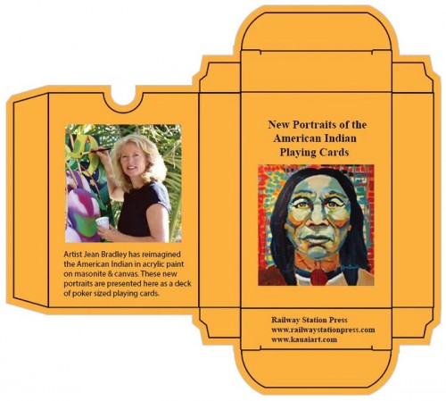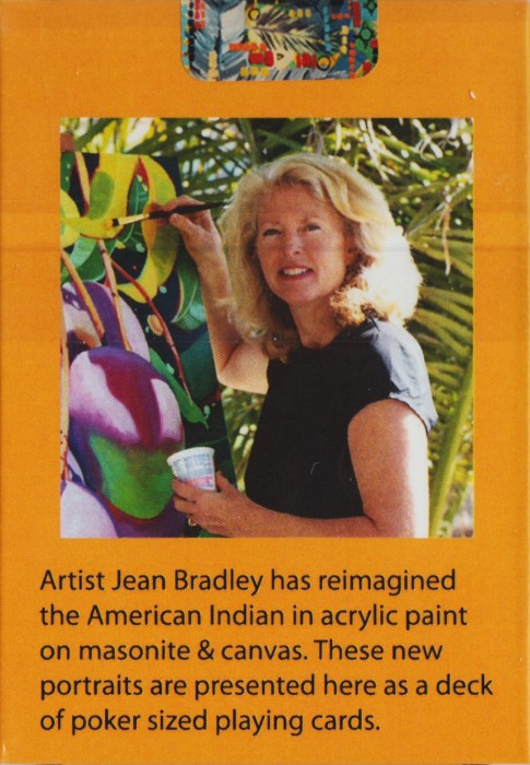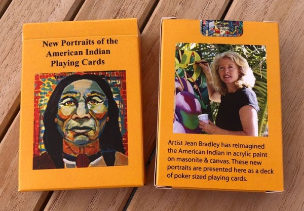Artist Jean Bradley has painted a series of portraits of reimagined American Indians and these paintings will be on a deck of poker sized playing cards. She has completed all 19 paintings.