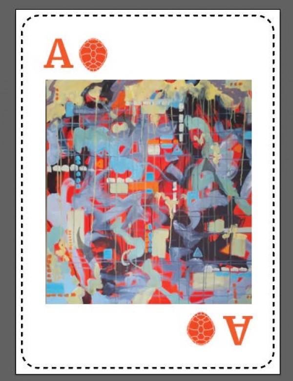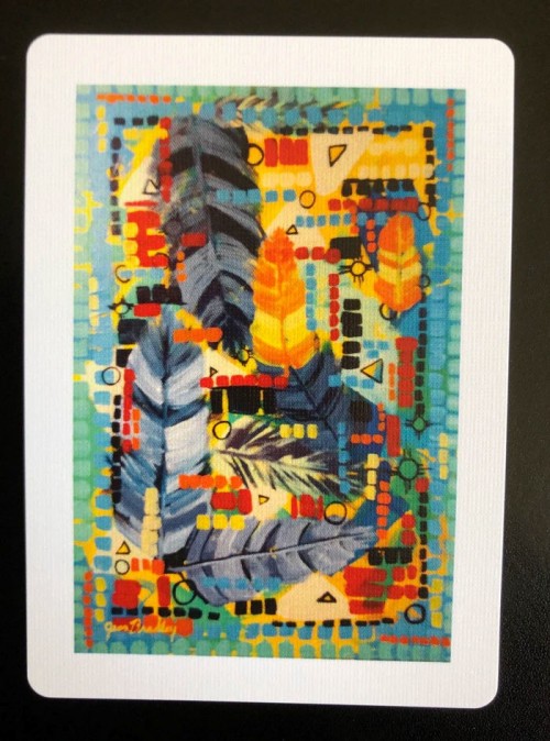 And the "Abstract With Feathers" painting that will be on the back of all 54 regular playing cards and the two extra cards. Specifications of the Playing Cards: