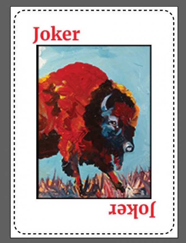 They are; The four adult males for the King cards, The four adult women for the Queen cards, Four young men for the Jack cards, The four Aces are all Abstracts, The two Jokers which are paintings of Buffalo