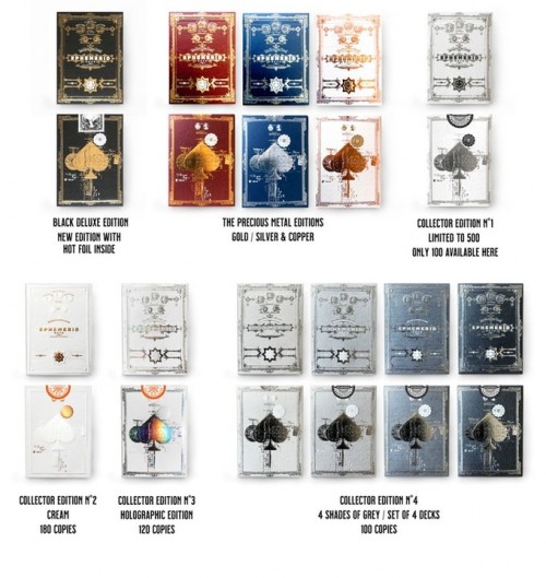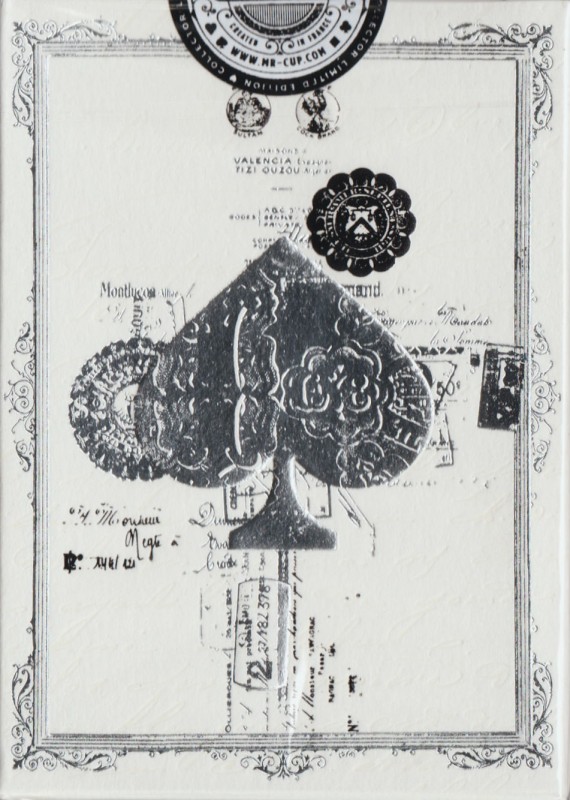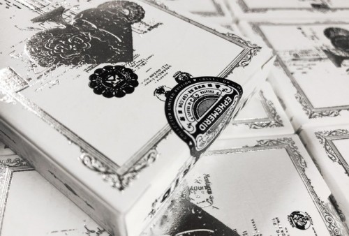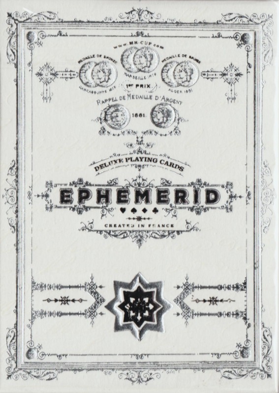 This deck was a KickStarter exclusive, released alongside the three Precious Metal editions (Gold, Silver, Copper). The tuck box is white with silver and black hot foil.