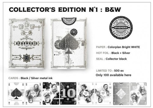 Collector’s Edition 1: white tuck case black and silver foils. The cards will be black and white with silver metallic ink. The edition is limited to 500 units but there are only 100 available in this campaign (the rest were all sold in the previous one as a KickStarter exclusive).