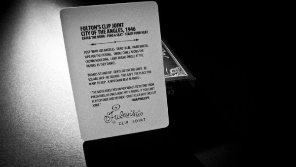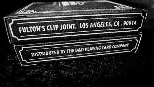 The first deck to ever be based on a fictional location, Clip Joint celebrated the Los Angeles Fulton loves--that of the 1940s. Noir, Dark rooms that smelled of bourbon. Back-room card games with tobacco smoke yellowing the cards before the end of the night. Clip Joint isn't a deck of cards--but an atmospheric experience housed within a house made of paper.