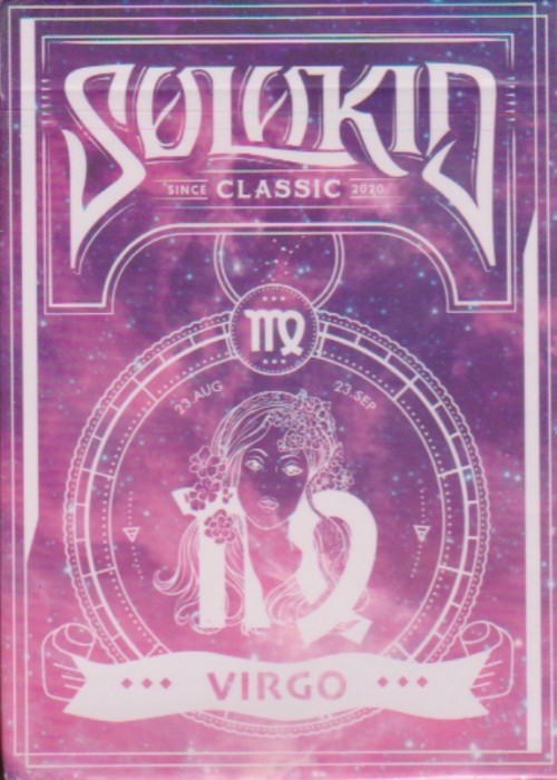 SOLOKID Constellation Playing Cards, the first constellation series from Solokid. All the 12 constellations have been included in this series. It's a great collection for playing card lovers and it's time to start a romantic journey to the beautiful galaxy! The box has the corresponding star chart with hand-drawn artwork; the face and the back of the card features different colors for each constellation and make you feel like the vast universe blooming in the palm of the hand. Manufactured by MPC with their newest Linen Air Light M30 card stock. Limited to 2500 decks.