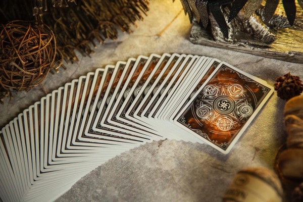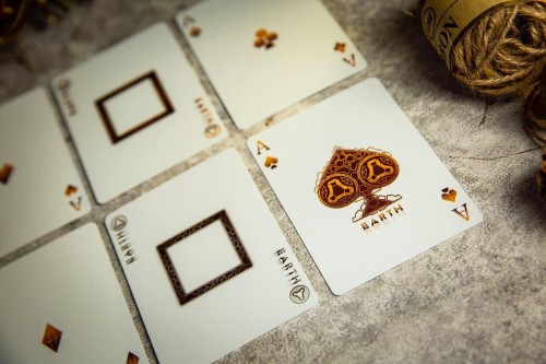 The full set consists of 5 decks of cards. 5 distinct designs correspond to 5 elements, which are represented as a totem on the back of the card and the card box.