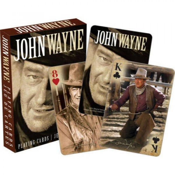 John Wayne themed playing cards with 52 different images. Sometimes comes in a 2 Set Tin