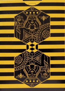 After making hugely popular Killer Bee and Super Bee designs in the past, Ellusionist knew there was only one more level that remained unexplored... The revered monarch herself - the Queen Bee. Unlike their Killer and Super Bee decks, which feature a faint white halo around the deck's edge - Queen Bees have no border. The Queens spill over the edge in their glorious abundance. The tuck-paper is matte yellow and thicker than standard deck cases. All details on the sides and front are debossed to create texture. The back of the tuck is foiled in black stripes featuring the life-giving Queen, taken from the Queen of clubs within the deck.