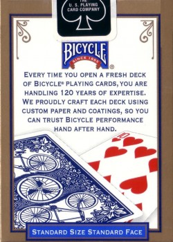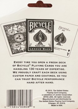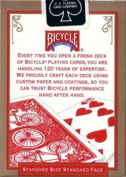 This deck has at least 2 versions top flap on one has 808 on right side and another deck has it on left side also bottom flap has bicycle on right side and on the other deck bicycle is on the left side.