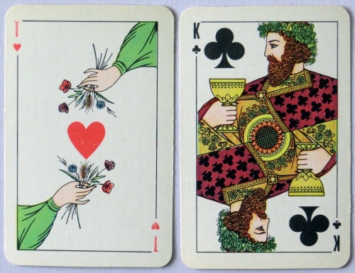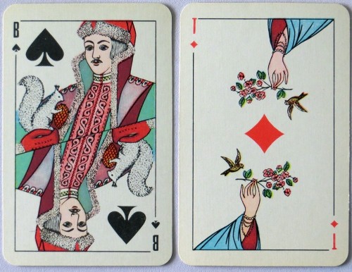 From 'The world of playing cards' :Originally titled “Seasons” or “Times of the Year” and first published by The Colour Printing Plant in St Petersburg in 1971, these cards were designed by artist U. P. Ivanov. Each suit is allegorical of one of the four seasons of Winter, Spring, Summer & Autumn.