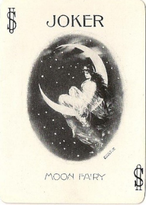 Congress No.606 deck titled “Moon Fairy” by U.S.P.C.C, 1899. This fine Ace of Spades was used on higher quality, gold edged editions which are relatively rarer to find. There were other versions of this back issued around the same time with a different border or a black background.