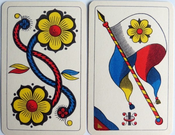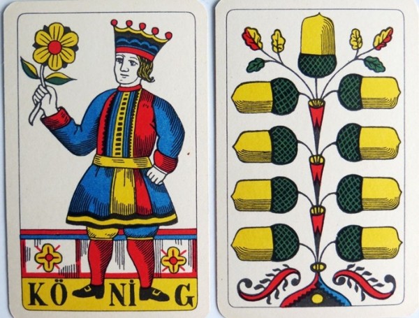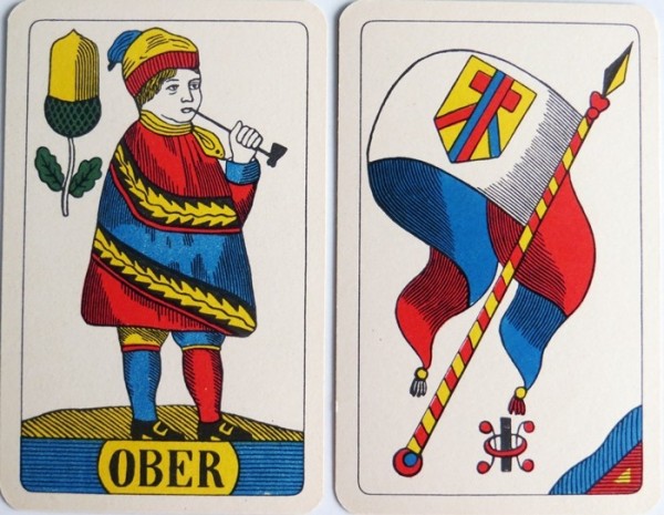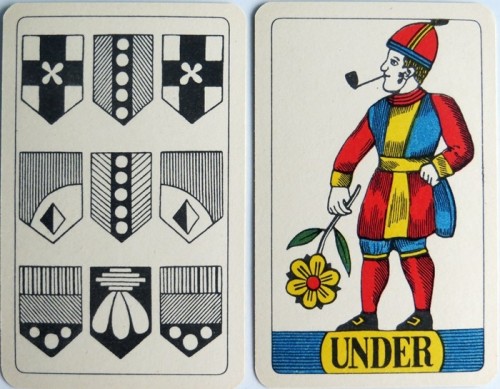 Standard single headed Swiss Pattern. The swiss suits are Acorns, Bells, (these are also used in Germany), Flowers and Banners/Flags.