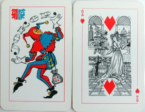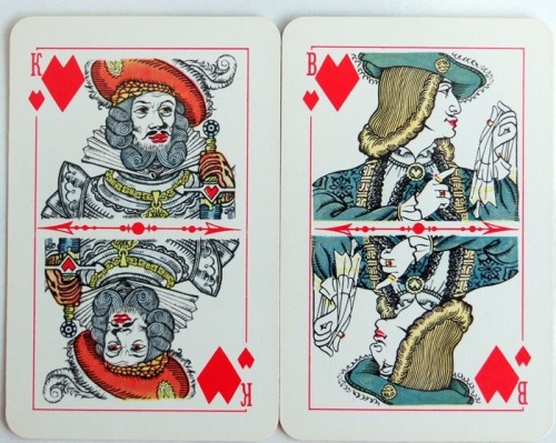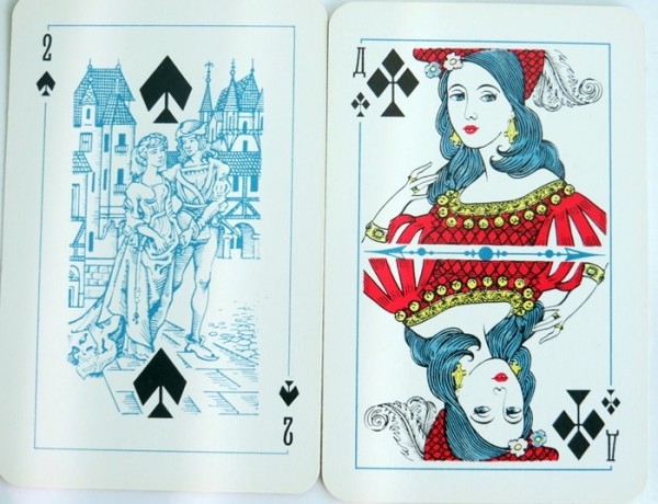 From 'The World of Playing Cards' : Russian playing cards with original designs by Viktor Mihajlovich Sveshnikov based on the theme of Opera and Theatre scenes, first printed by the Colour Printing Plant (USSR, Russian Federation) in 1973. The Russian indices are: Ace – Туз, Jack – Валет, Queen – Дама, King – Король.