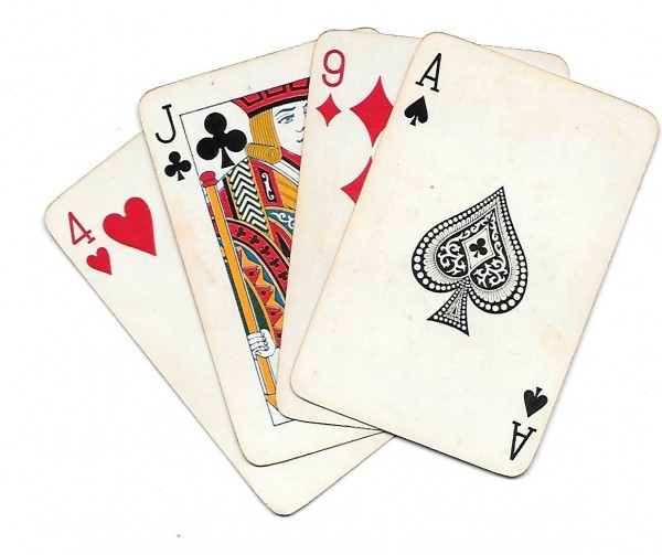 A cheap bridge-sized paper deck without a finish made in China and sold during the 1960s in a twin pack with a red deck.